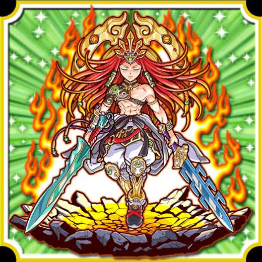 八首の悪龍を倒したとされる秘神。その後は地を守りながら、自らの剣を磨くための修練は欠かしていない。二刀を操り敵に天地の理を刻む。