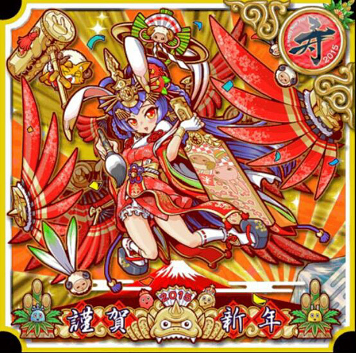 天上に輝く月に住むウサギの女神。年始に地上に降りて来て、お供の精霊たちと羽子板を楽しんでいる。羽子板は達人級の腕前で顔に墨を描かれたことはないらしく、手応えのある相手を探している。